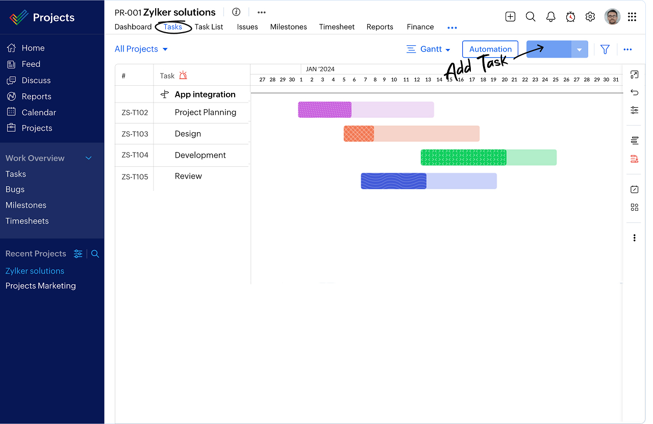 - [Project process automation]: Automatically execute tasks and complete more tasks in less time. The Projects online project management tool interface supports drag and drop to quickly generate visual task processes. Automated workflows merge repetitive operations to release team productivity.